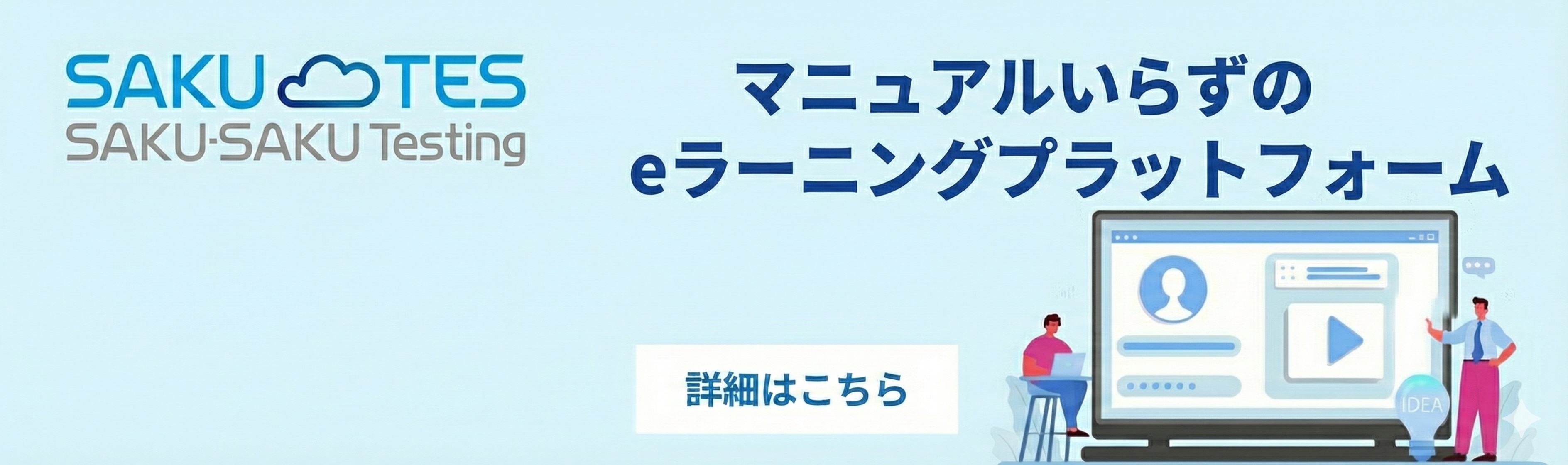 eラーニングプラットフォーム「SAKU-SAKU Testing」 を提供しています。