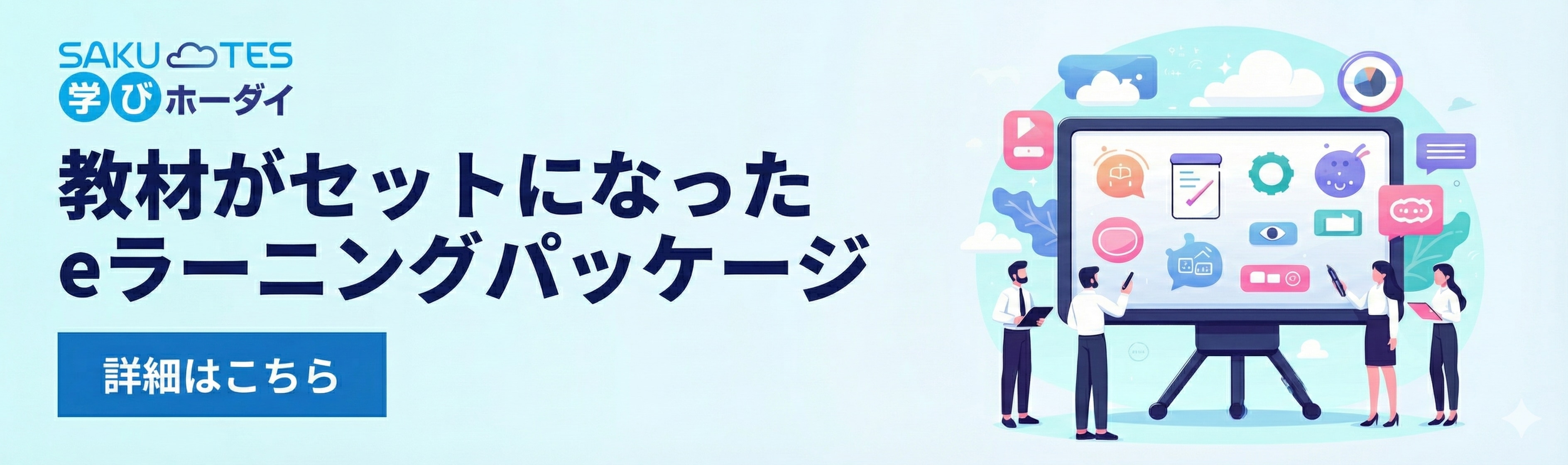 さらに、コンテンツ選定や準備に時間をかけられない企業様には、eラーニングシステムとコンテンツがセットになったパッケージ「サクテス学びホーダイ」 がおすすめです。