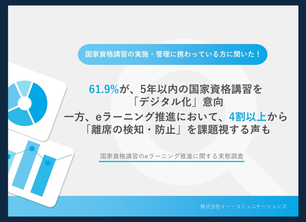 国家資格講習の実施・管理に携わっている方100名を対象に、国家資格講習のeラーニング推進に関する実態調査を実施しましたので、お知らせいたします。