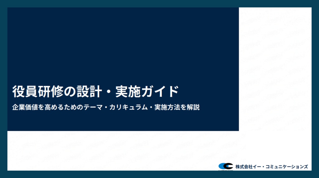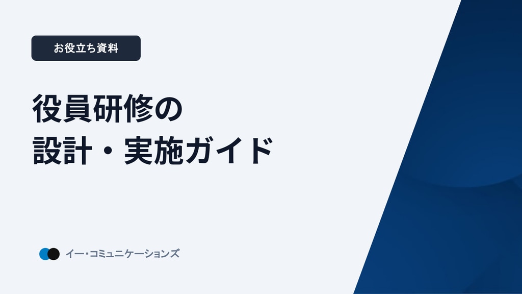 役員研修の企画・設計を担当する方向けに、企業価値向上に資するカリキュラム策定から実施方法までをまとめた資料です。