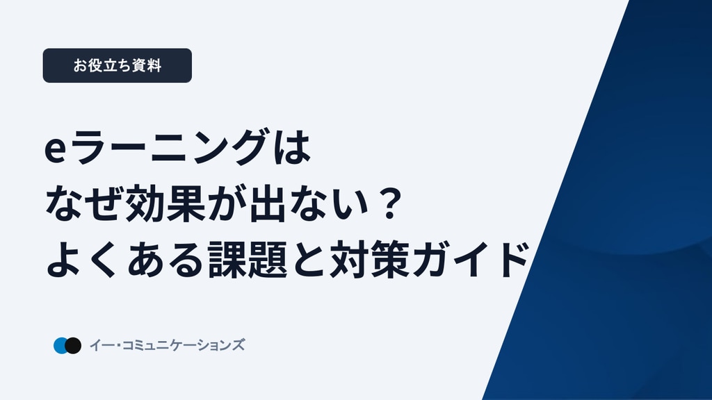 eラーニング導入後に「定着しない」「受講率が上がらない」「管理が煩雑になる」といった課題を抱える企業向けに、よくある課題の背景や原因、効果を高めるための具体的な改善アプローチをまとめた資料です。